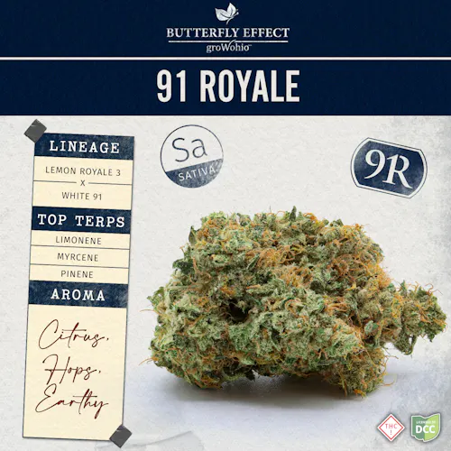 "91 Royale" is a sativa strain known for its uplifting and energizing effects, often described as a "zesty" or "lemon" flavor with a smooth, earthy finish. It's commonly produced by Butterfly Effect, a brand known for its premium cannabis products. The strain is a cross between Lemon Royale and White 91 and is favored for its ability to stimulate creativity and focus.