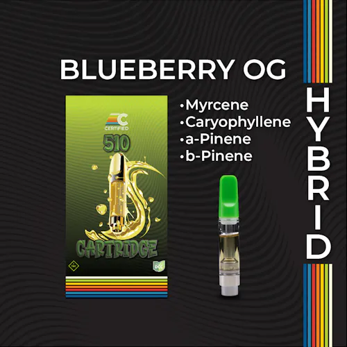 DESCRIPTION: Blueberry OG offers a rich, layered aroma that begins with a burst of juicy, fruit-forward depth from the pairing of Caryophyllene and Myrcene. As the initial sweetness settles, the profile deepens into a hazy blend of fresh-cut wood and warm spice, thanks to Alpha-Pinene, Beta-Pinene, and Humulene. Bisabolol and Nerolidol lend a subtle floral smoothness, while Limonene adds a faint citrus lift. Trans-Nerolidol enhances the finish with earthy, resinous complexity, creating an aroma that evokes blueberry richness fading into sandalwood and cedar-like notes—fresh, bold, and grounded.