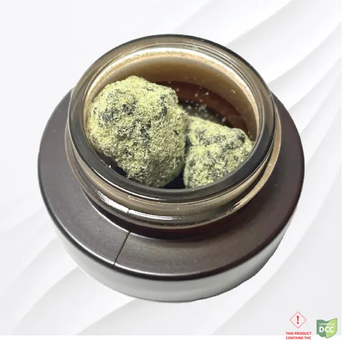 Ancient Roots Hashtroids are crafted by coating premium craft flower in solventless live rosin hash oil, then rolling it in a layer of dry sift kief. This carefully layered infusion enhances both aroma and intensity, offering a bold, terpene-rich experience for patients seeking elevated relief.