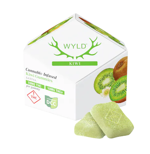 Wyld's Kiwi gummies are tailor-made with real fruit and THCv to unlock your next level. With a 1 to 1 blend of THC and THCv, these uplifting gummies open up a Sativa experience that brings a boost of energy and focus to the typical THC high. Feeling Fuzzy? Time for Wyld's Kiwi gummies.